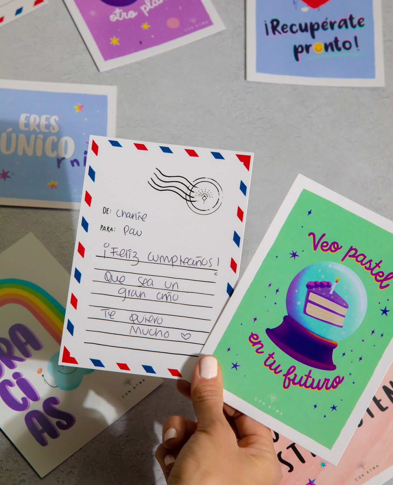 ✨ Escribe tu mensaje en el campo de "Notas" al finalizar tu pedido y nosotros lo escribiremos con amor en la postal elegida. Ideal para sorprender a alguien que amas (¡o para apapacharte tú misma!).